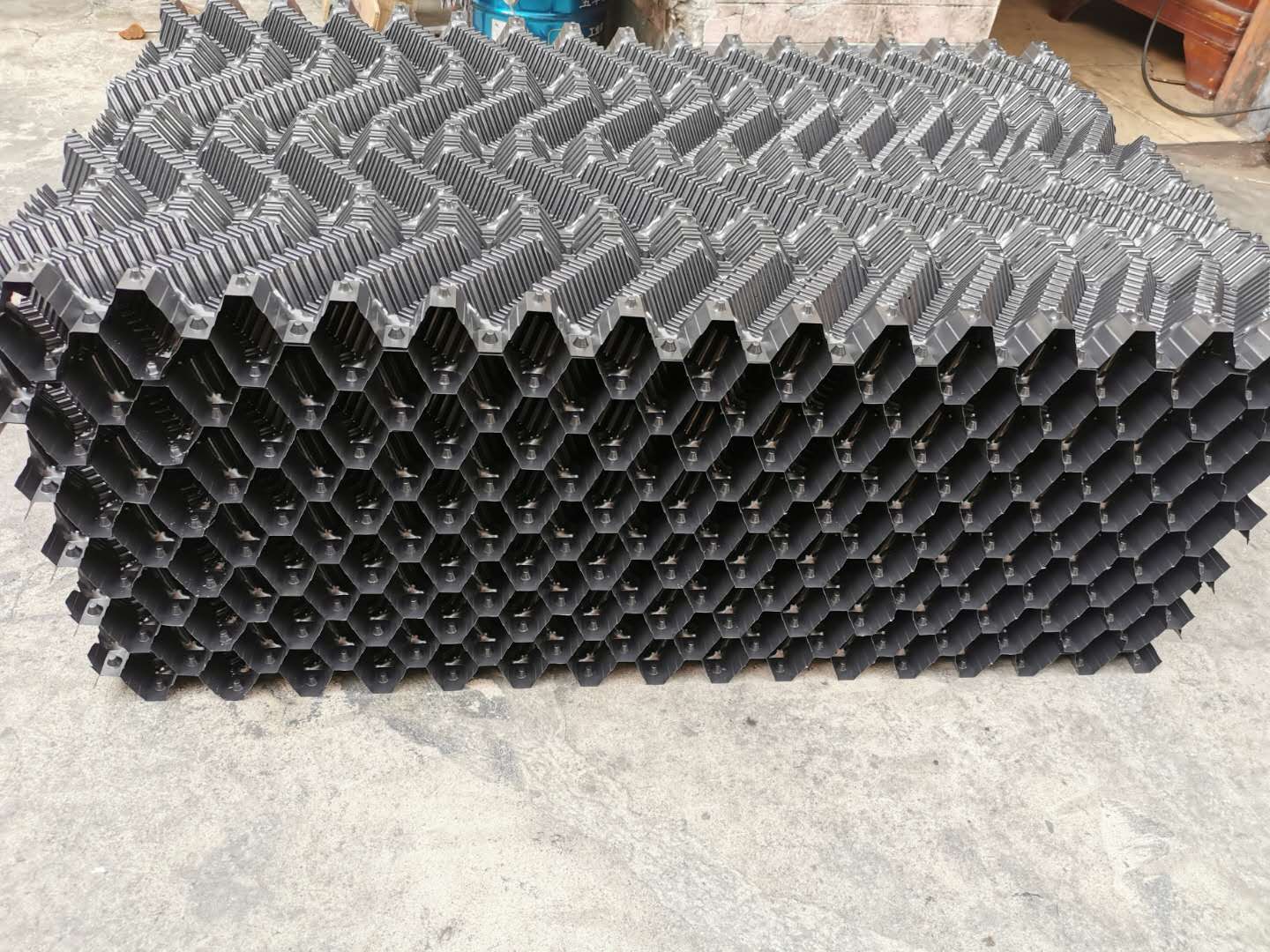 填料具有表面积大、亲水性好、风阻小、散热系数大、综合热性能好、使用寿命长根据冷却塔实际尺寸组装成不同尺寸的矩形填料组装单元。